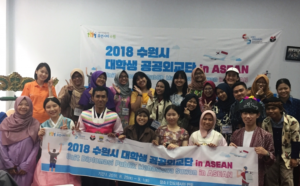 올해 처음 시행되는 수원시 대학생 공공외교단은 공개모집 절차를 통해 경희대학교 “에너자이저(팀장 이주은)”와 “아주스낭(팀장 이건호)”이 각각 베트남 하이즈엉성 탄동대학교와 동아시아-라틴아메리카 협력포럼(FEALAC) 내 인도네시아 반둥시 유스센터, 인도네시아 국립교육대학(UPI) 파견팀으로 선정되었다.