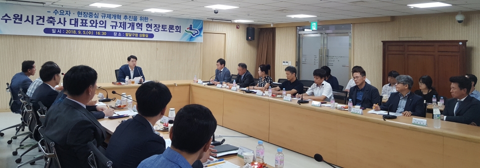 【뉴스라이트】 수원시는 5일 팔달구청 상황실에서 수원시건축사회 회원들과 ‘규제개혁 현장방문 토론회’를 열고, 건축 관련 각종 규제의 개선방안을 논의했다.