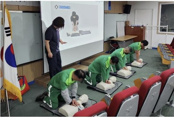 이날 교육에는 전문 강사의 안전 이론 강의와 함께 실제 상황이 발생했을 시, 확실하게 대응할 수 있도록 심폐소생술 및 자동심장충격기(AED) 사용 및 기도 폐쇄 시 응급 처치 방법 등 실습 위주로 진행됐다.