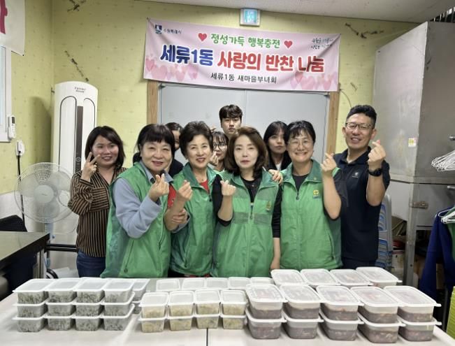 【뉴스라이트 = 조용은 기자】 수원시 권선구 세류1동 새마을부녀회는 지난 14일 관내 취약계층 18가구에 사랑 가득한 반찬 나눔 행사를 진행하였다.