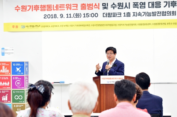 수원시는 11일 서둔동 더함파크 대회의실에서 ‘수원기후행동네트워크’ 출범식을 열고 출범을 선언했다.