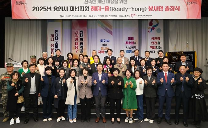 【뉴스라이트 = 박현서 기자】 용인특례시에서 경기도 동남부 9개 지방자치단체 자원봉사센터와 100여명의 봉사단이 모여 ‘2025년 용인시 재난지원 레디-용(Ready-Yong) 봉사단 출정식’을 열었다.