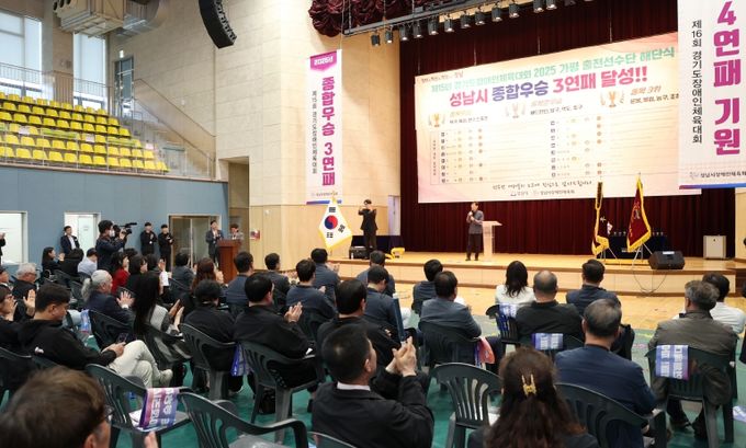 이날 해단식은 지난 24~26일 개최된 제15회 경기도장애인체육대회에서 종합우승 3연패를 달성한 성남시 선수단을 격려하기 위해 마련됐다. 총 304명으로 구성된 성남시 선수단은 도내 31개 시·군 4000여 명의 선수와 17개 종목에서 경쟁을 펼친 가운데 금메달 61개와 은메달 50개, 동메달 32개로 총 143개의 메달을 획득하여 종합우승을 차지했다.