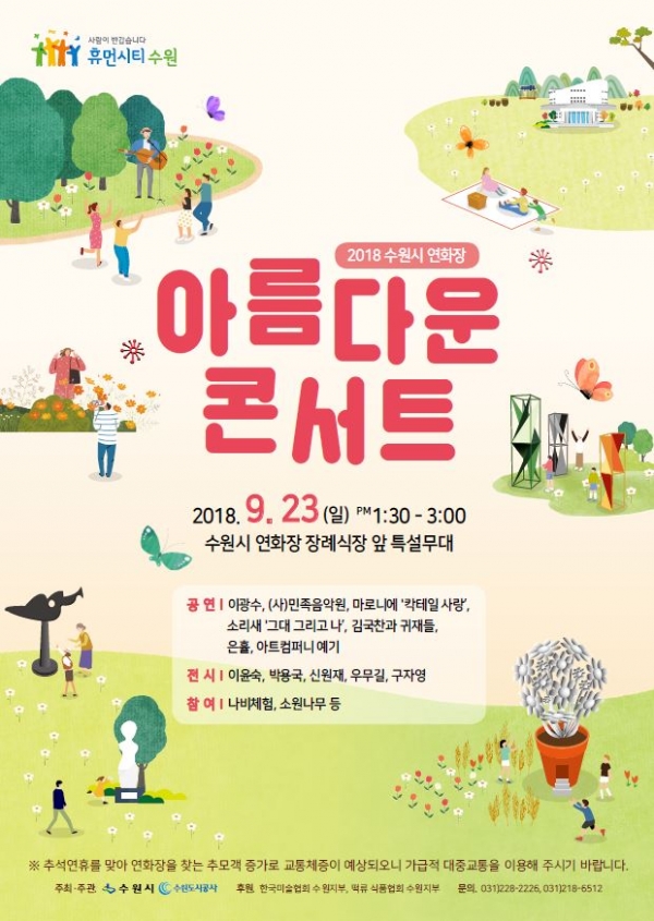 수원시는 추석 전날인 23일 오후 1시 30분부터 연화장 장례식장 앞 특설무대에서 ‘아름다운 콘서트’를 연다.