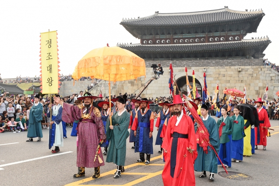 올해 정조대왕 능행차 재현에는 총인원 5096명, 말 690필, 취타대 16팀이 투입된다.