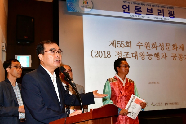 수원시가 20일 수원문화재단 영상실에서 제55회 수원화성문화제(10월 4~6일)에 대한 언론브리핑을 열고, 수원화성문화제 주요 프로그램을 소개했다.