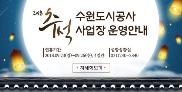 수원도시공사(사장 이부영)는 민족 고유 명절인 추석을 맞아 ‘2018년 추석 연휴 종합대책’을 수립했다고 19일 밝혔다.