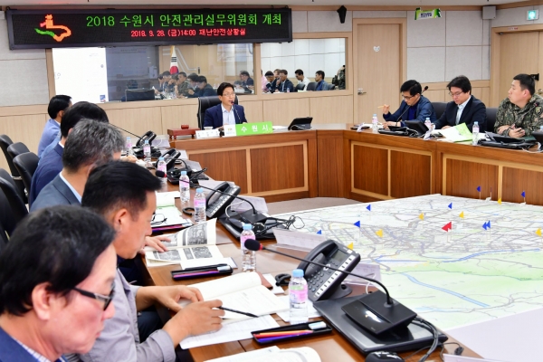 수원시는 28일 수원시청 재난안전상황실에서 ‘2018 안전관리실무위원회’를 열고, 10월 수원에서 열리는 4개 축제의 ‘안전사고 제로(ZERO)화’를 목표로 시민 안전대책을 점검했다.