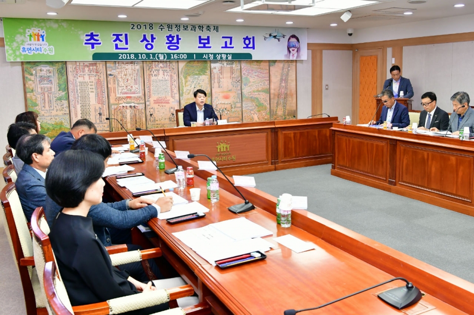 수원시는 1일 시청 상황실에서 2018 수원정보과학축제 추진상황 보고회를 열고, 축제 준비상황을 점검했다.