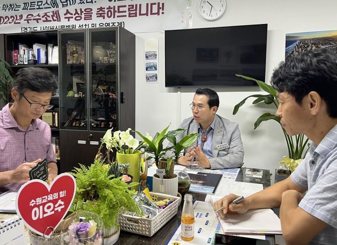 【뉴스라이트 = 조용숙 기자】 경기도의회 농정해양위원회 이오수 의원(국민의힘, 수원9)은 17일 경기도의회 의원실에서 경기도청 버스관리과 시외버스팀 관계자들과 간담회를 갖고, 광교중앙역을 경유하는 시외버스 노선 변경 방안에 대해 논의했다.