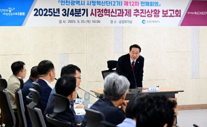 【뉴스라이트 = 이세현 기자】 인천광역시는 9월 25일 시청 공감회의실에서 ‘2025년 3/4분기 시정혁신과제 추진상황 보고회’를 개최했다고 밝혔다.
