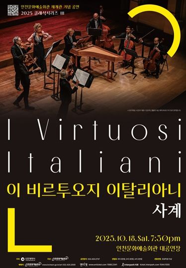 【뉴스라이트 = 이세현 기자】 인천광역시 문화예술회관이 전관 재개관을 기념해 10월 18일 인천문화예술회관 대공연장에서 2025 클래식 시리즈 세 번째 무대를 선보인다. 이탈리아를 넘어 국제적으로 명성을 쌓아온 ‘이 비르투오지 이탈리아니’를 초청해 환상적인 연주를 펼쳐 보인다.