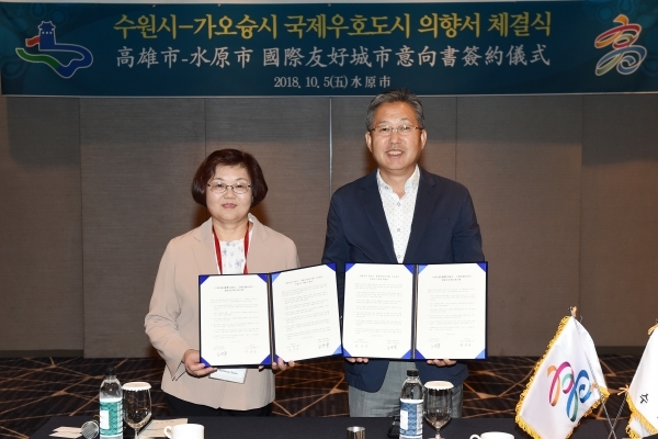 수원시는 5일 팔달구 라마다프라자호텔 수원에서 홍사준 기획조정실장과 왕스팡 가오슝시 부비서장을 비롯한 가오슝시 방문단 9명 등이 참석한 가운데 대만 가오슝시와 우호 도시 의향서를 체결했다.