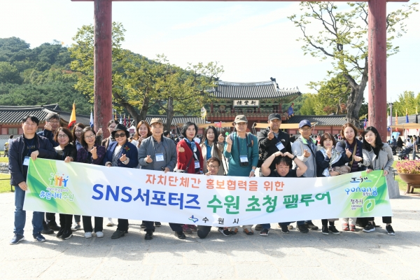 수원화성문화제와 수원의 관광자원을 알리기 위해 마련한 이번 팸투어(사전답사 여행)에는 수원시와 홍보협약을 체결한 도시에서 활동하는 SNS 서포터즈 24명이 참가했다.