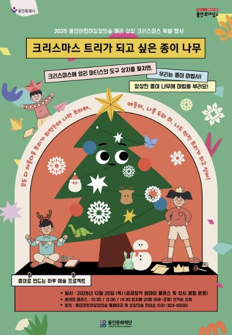 용인어린이상상의숲에서는 공공 창작 프로젝트 〈크리스마스트리가 되고 싶은 종이나무〉가 진행된다. 어린이들이 종이를 접고, 오리고, 붙이는 창작 활동을 통해 종이 나무를 함께 꾸며 하나의 크리스마스트리를 완성하는 참여형 프로그램으로, 아이들의 주체적인 참여를 통해 상상력과 표현력을 키우고 또래 친구들과 협력해 하나의 작품을 완성시키는 공동 창작의 즐거움도 경험할 수 있다.