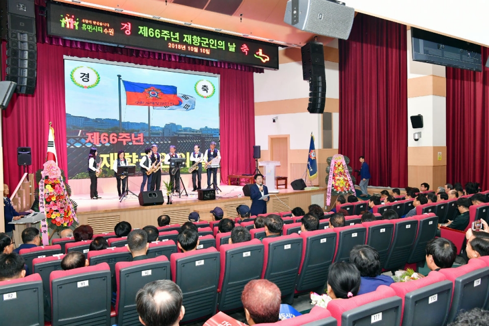 이날 기념식에는 홍사준 수원시 기획조정실장, 홍종수 수원시의회 부의장을 비롯해 김영경 재향군인회장 등 250여 명이 참석해 향군 유공자에게 표창을 수여하고 재향군인들의 노고를 격려했다.