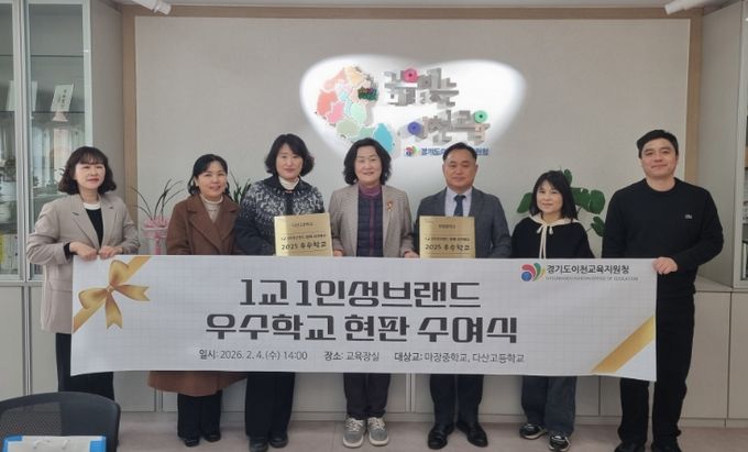 이번 수여식은 학교별 특성을 살린 인성 브랜드를 구축하고, 일상 속 인성교육 실천에 앞장선 우수교의 성과를 격려하기 위해 마련됐다. 행사에는 이천교육지원청 김은정 교육장을 비롯해 마장중학교 최진 교장, 다산고등학교 권지은 교감 등 학교 관계자 10여 명이 참석했다.