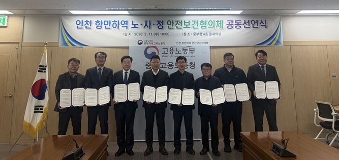 【뉴스라이트 = 이세현 기자】 중부지방고용노동청은 2월 11일 인천 항만하역 현장의 산업재해 예방과 안전문화 정착을 위해 노동자·사업주·정부가 함께하는 ‘인천 항만하역 노·사·정 안전보건협의체 공동선언식’을 개최했다.