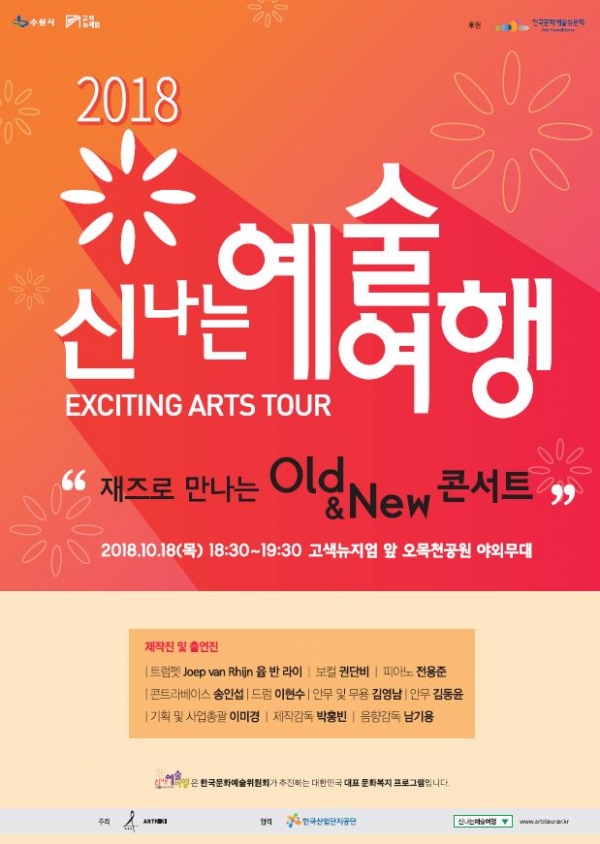 수원고색뉴지엄이 18일 오후 6시 30분 권선구 오목천공원에서 ‘2018 신나는 예술여행-재즈로 만나는 Old&New 콘서트’를 연다.