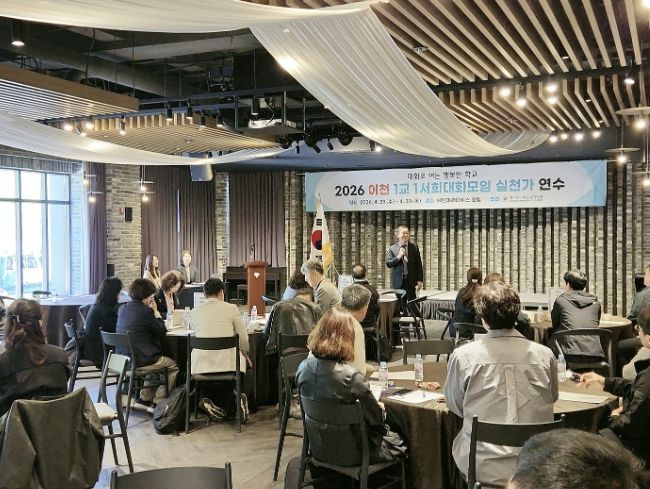 【뉴스라이트 = 김정민 기자】 이천교육지원청은 4월 29일부터 30일까지 1박 2일간 에덴파라다이스호텔에서 관내 소속 모든 교(원)감을 대상으로 ‘2026 이천 1교 1서희대화모임 실천가 역량 강화 연수’를 운영한다.