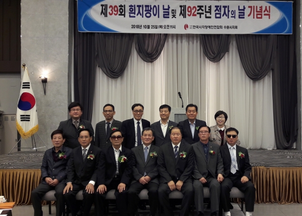 수원시는 (사)경기도시각장애인협회 수원시지회와 함께 25일 팔달구 WI 컨벤션에서 ‘제39회 흰 지팡이 날’과 ‘제92주년 점자의 날’을 기념하는 행사 열었다.