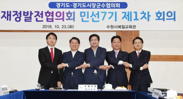 경기도시장군수협의회(회장 염태영 수원시장)와 경기도는 지난 23일 수원시예절교육관에서 ‘민선 7기 제1차 재정발전협의회’를 열고, ‘경기도청년배당’·‘경기도 산후조리비’·‘지역화폐 발행 및 운영’·‘지방세 체납자 실태조사’ 등 경기도 역점 사업에 대한 도비 보조 비율 등을 논의한 바 있다.