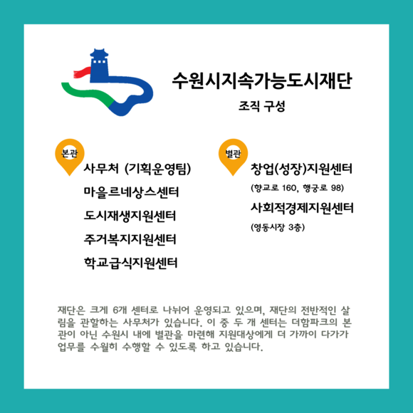 안상욱 수원시지속가능도시재단 이사장은 “도시재생대학이 대상지 주민들의 도시재생에 대한 역량과 관심을 높일 수 있을 것”이라며 “도시재생사업에 참여하는 도시재생 활동가들이 늘어나길 바란다”고 말했다.