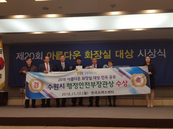 수원시는 ‘아름다운 화장실 공모전’에서 24차례 수상하며 ‘명품 화장실 도시’로서 위상을 공고히 하고 있다. 제1회 공모전(1999년)에서 ‘광교산 반딧불이 화장실’이 대상을 받은 것을 시작으로 팔달산 기슭 전망 좋은 화장실, 송죽동 만석공원 화장실, 광교신도시 혜령공원 화장실, 광교 어반레비 화장실 등이 수상의 영예를 안았다.