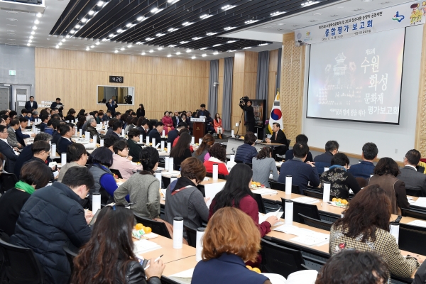 이날 평가보고회에는 염태영 수원시장을 비롯한 공직자들, 수원화성문화제추진위원회 김훈동 공동위원장, 추진위원 등 200여 명이 참석했다.