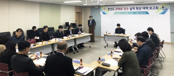 수원시가 13일 시청 소회의실에서 ‘2018년 현년도 과태료 징수 실적 향상 대책 보고회’를 열고, 올해 목표인 ‘과태료 징수율 73%’를 초과 달성하기 위한 대책을 논의했다.