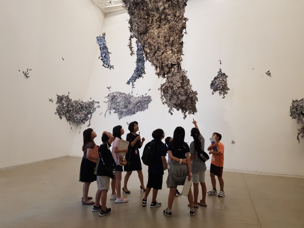 작품에 참여한 어린이 작가들은 전시장에서 어린이 관람자에게 자기 작품을 설명해 주는 도슨트의 역할도 맡게 된다.