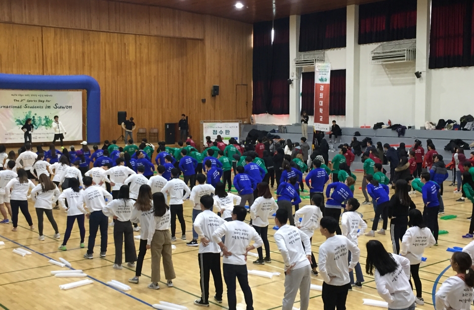 (재)수원시국제교류센터(이하 센터, 센터장 노만호)는 11월 18일 경기대학교 실내체육관에서 수원권대학교 국제교류협의회 소속 네 개 대학(경기대학교, 경희대학교, 성균관대학교, 아주대학교)에 재학 중인 외국인 유학생 약 400명과 함께하는‘제2회 수원시 외국인 유학생 어울림 체육대회’를 성황리에 개최했다.