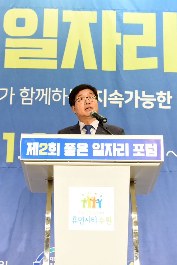 수원시가 지난해 처음 연 좋은 일자리포럼은 정부·학계·민간 일자리 전문가, 지방자치단체장, 시민 등이 참여해 일자리 정책 성과를 공유하고, 일자리 창출 방안을 논의하는 포럼이다. 이번 포럼에는 300여 명이 참석했다.