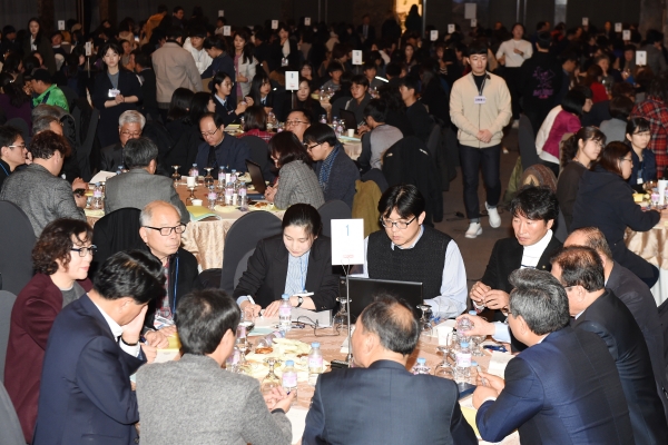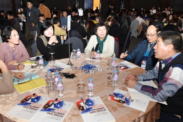 ‘평화와 통일로 가는 여정, 수원시민과 함께’을 주제로 열린 이날 원탁토론에는 청소년, 어르신 등 다양한 연령대 시민 300여 명이 30개 원탁에 나눠 앉아 ‘수원형 남북교류협력사업’을 의제로 토론했다. 토론 참여자는 사전에 모집했다.