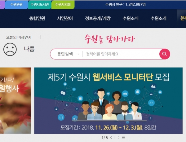 수원시 관계자는 “웹서비스 모니터단의 의견을 적극적으로 반영해 시민이 참여할 수 있는 ‘소통 중심의 웹서비스’를 구현하겠다”고 말했다.