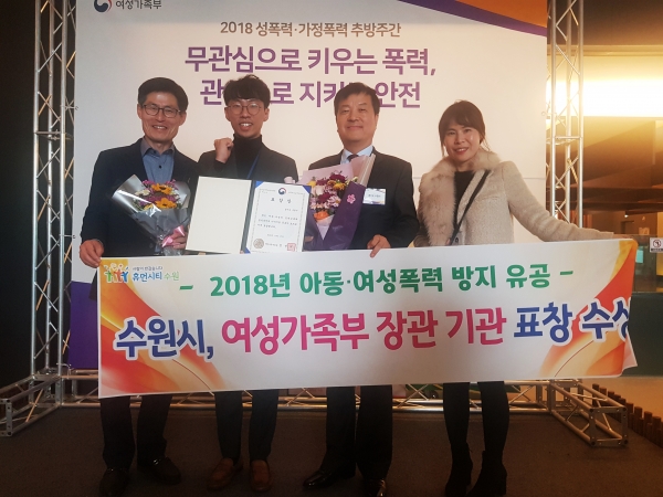 수원시가 아동·여성폭력 방지 공로를 인정받아 ‘여성가족부 장관’ 기관 표창을 받았다. 시상식은 27일 서울 을지로 페럼타워에서 열렸다.