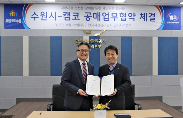 이날 협약식에는 수원시 이택용 경제정책국장, 김구영 한국자산관리공사 경기지역본부장, 두 기관 관계자들이 참석했다.