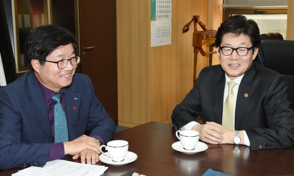 염태영 시장은 28일 서울 중구 환경부 서울사무소에서 조명래 장관을 만나 수원시가 전개하는 환경 관련 사업에 국비 지원과 협조를 요청했다.