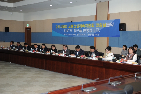 수원시의회 교통건설체육위원회(위원장 김미경)는 29일 고양시 일산에 위치한 킨텍스를 방문해 전시시설을 견학하고 수원컨벤션 센터 운영에 관한 다양한 의견을 나눴다.