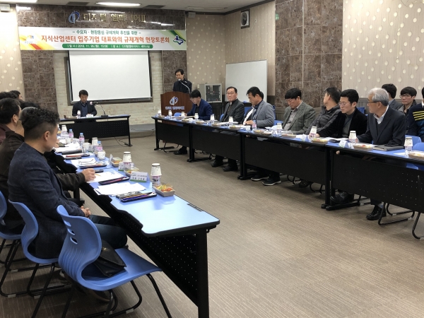 이날 현장 방문 토론회에는 이택용 수원시 경제정책국장을 비롯한 수원시 공직자와 지식산업센터 입주기업대표 12명, 규제개혁위원회 위원들이 참석했다.