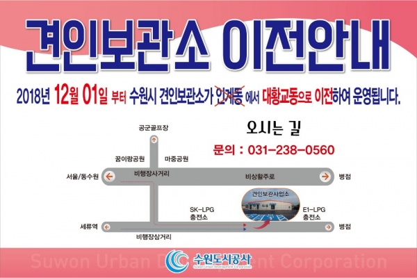 수원도시공사(사장 이부영)는 현재 운영중인 수원시 견인차량보관소(이하: 견인차보관소)를 대황교동(수원시 권선구 정조로 304번길)으로 이전, 오는 12월 1일부터 본격 운영한다고 26일 밝혔다.