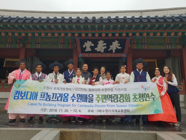 (재)수원시국제교류센터(센터장 노만호)는 11월 27일~12월 4일간 「캄보디아 수원마을 주민역량강화 초청연수」을 통해 마을주민 8명과 시엠립 주정부 공무원 2명으로 구성된 수원마을 주민대표단을 초청했다.