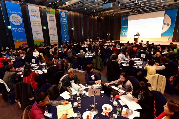 이날 토론회에는 시민, 협치시정 참여자, 공직자 등 300여 명이 참석했다. 30개의 원탁에 10명씩 둘러앉아 ‘협치 활성화를 위한 우리의 과제’를 주제로 의견을 나눴다.