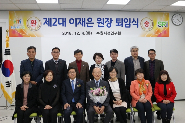이재은 제2대 수원시장연구원장이 임기를 마치고 퇴임했다. 수원시는 퇴임식을 열고, 3년여 동안 수원시정 발전을 위해 헌신한 이 원장에게 고마움을 전했다.