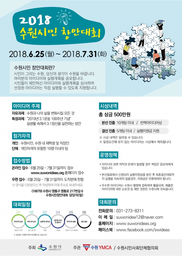 【뉴스라이트】 수원시는 6월 25일부터 7월 31일까지 ‘2018 수원시민 창안대회’ 아이디어를 공모한다.
