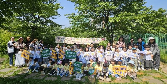 1부에는 해누리유치원 원아 160여 명이 ‘형·동생 다 함께 기후의병 줍킹데이’를 주제로 한내근린공원 일대를 걸으며 쓰레기를 줍고, 자원순환과 재활용을 체험하는 시간을 가졌다.