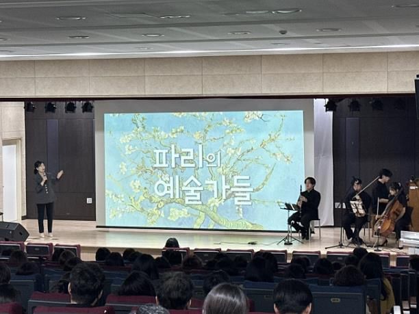 이번 음악회는 ‘그림 읽어주는 베토벤’을 주제로, 교과 융합형 예술 수업 역량을 높이고 교원의 정서적 안정과 문화 향유 기회를 제공하고자 기획됐다. 무대에는 전문 연주팀 ‘1M 클래식’이 출연해 마네, 모네, 빈센트 반 고흐 등 파리 화가들의 명화를 클래식 음악과 함께 소개하며 깊은 울림을 전했다.