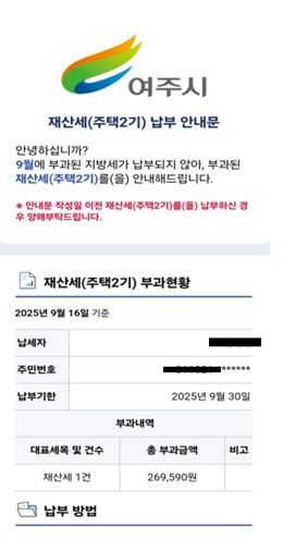 특히 이번 9월 재산세 알림톡에는 단순한 지방세 납부 안내를 넘어 전자문서 하단에 배너를 이용하여 여주시 대표 축제인 “오곡나루 축제” 홍보 동영상을 삽입하여 시민들이 지방세 납부 안내와 함께 축제 정보를 자연스럽게 접할 수 있도록 했다.