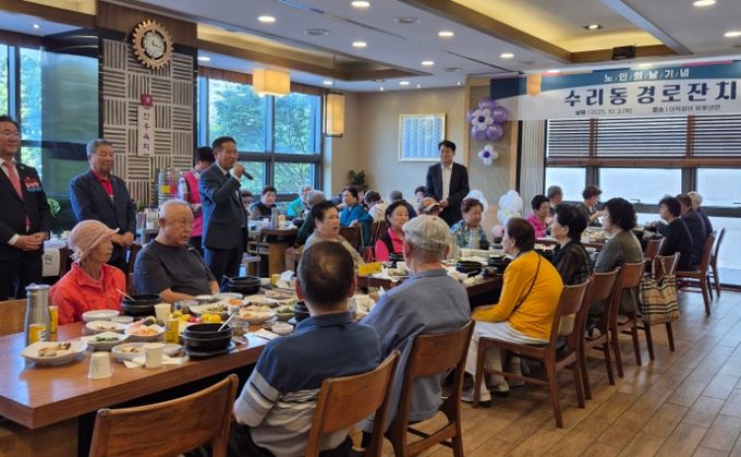 【뉴스라이트 = 이양지 기자】 군포시 수리동 주민자치회(회장 고진해)는 제29회 노인의 날을 맞아 지난 10월 2일 수리동 어르신들을 대상으로 경로잔치를 개최했다. 이번 행사는 하은호 군포시장, 이학영 국회부의장 등 여러 내빈과 수리동 직능단체장들이 어르신 100여 명과 뜻깊은 자리를 함께했다.