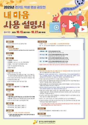피성주 경기도교육복지종합센터관장은 “이번 공모전은 학생들이 스스로 마음을 들여다보고 불안이나 외로움을 극복하는 나만의 방법을 표현하고 공유하는 뜻깊은 시간이 되길 바란다”고 말했다.